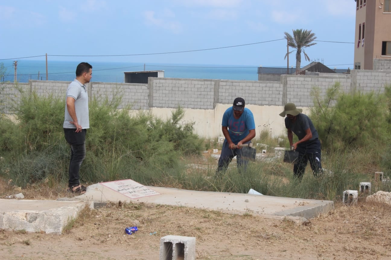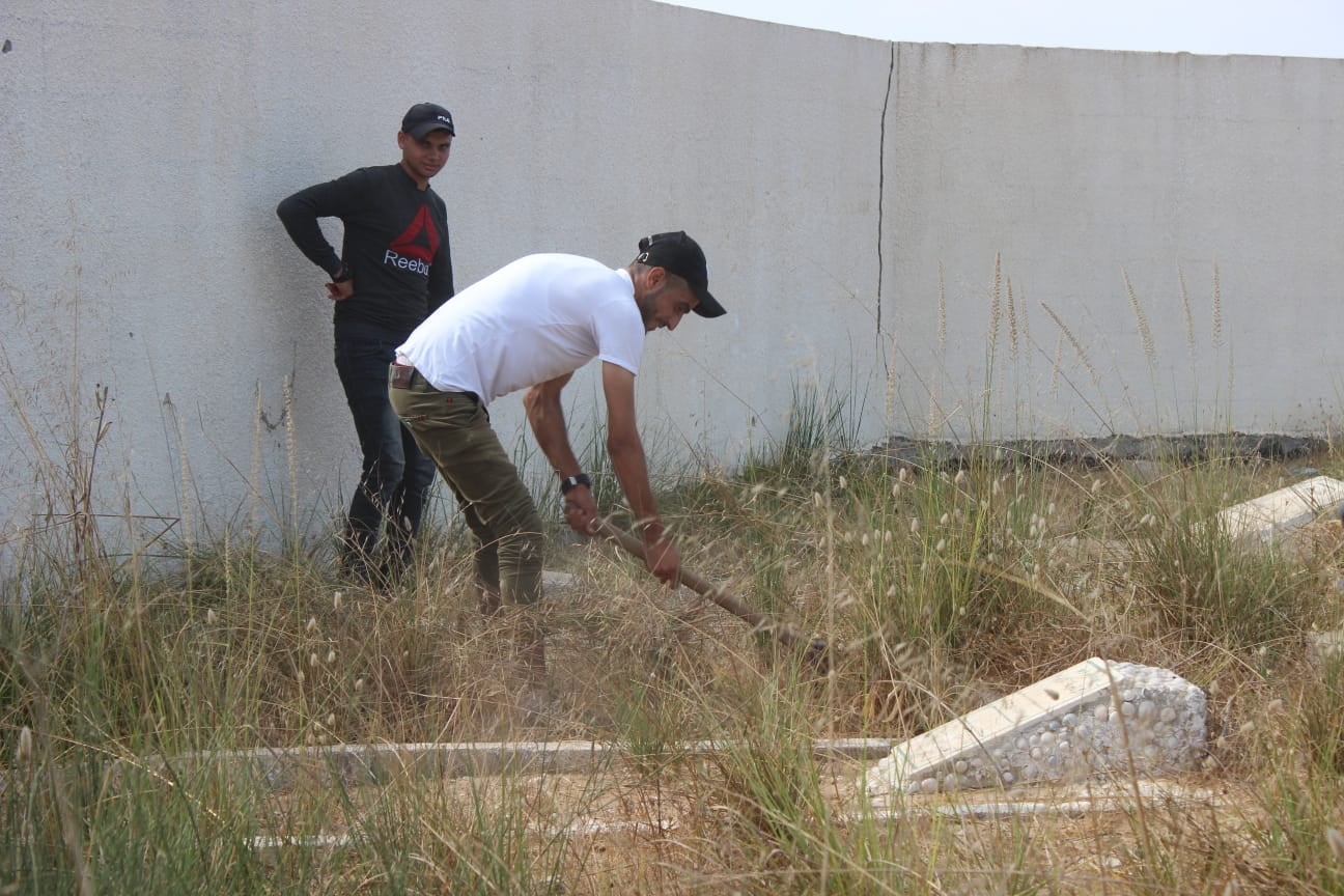 بلدية النصيرات تنفذ أعمال تنظيف وتعشيب بالتعاون مع مصلحة السجون