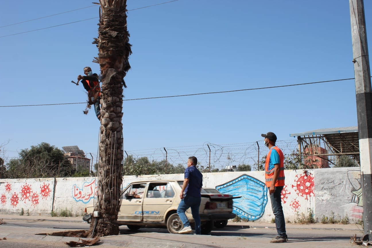 طاقم قسم الصحة والبيئة ينفذ حملة لكنس الرمال في عدة شوارع رئيسية بالنصيرات
