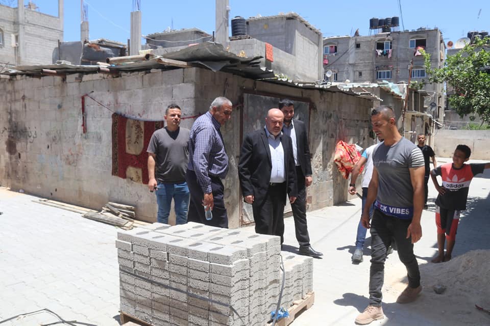 جولة ميدانية لرئيس بلدية النصيرات لمتابعة أعمال تبليط مربع الفرن بمنطقة مخيم 1