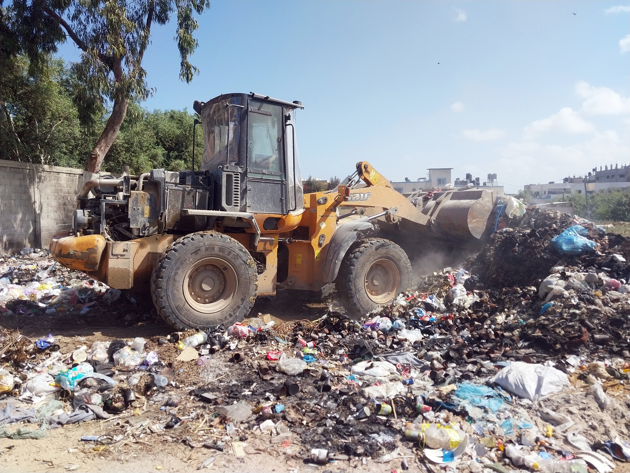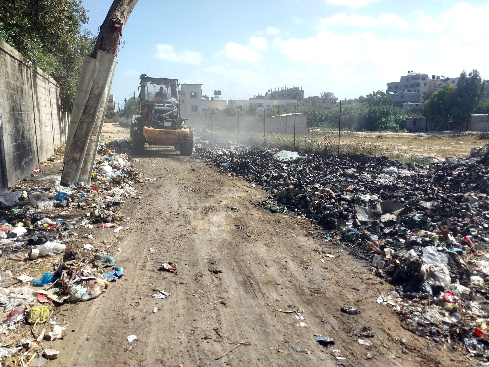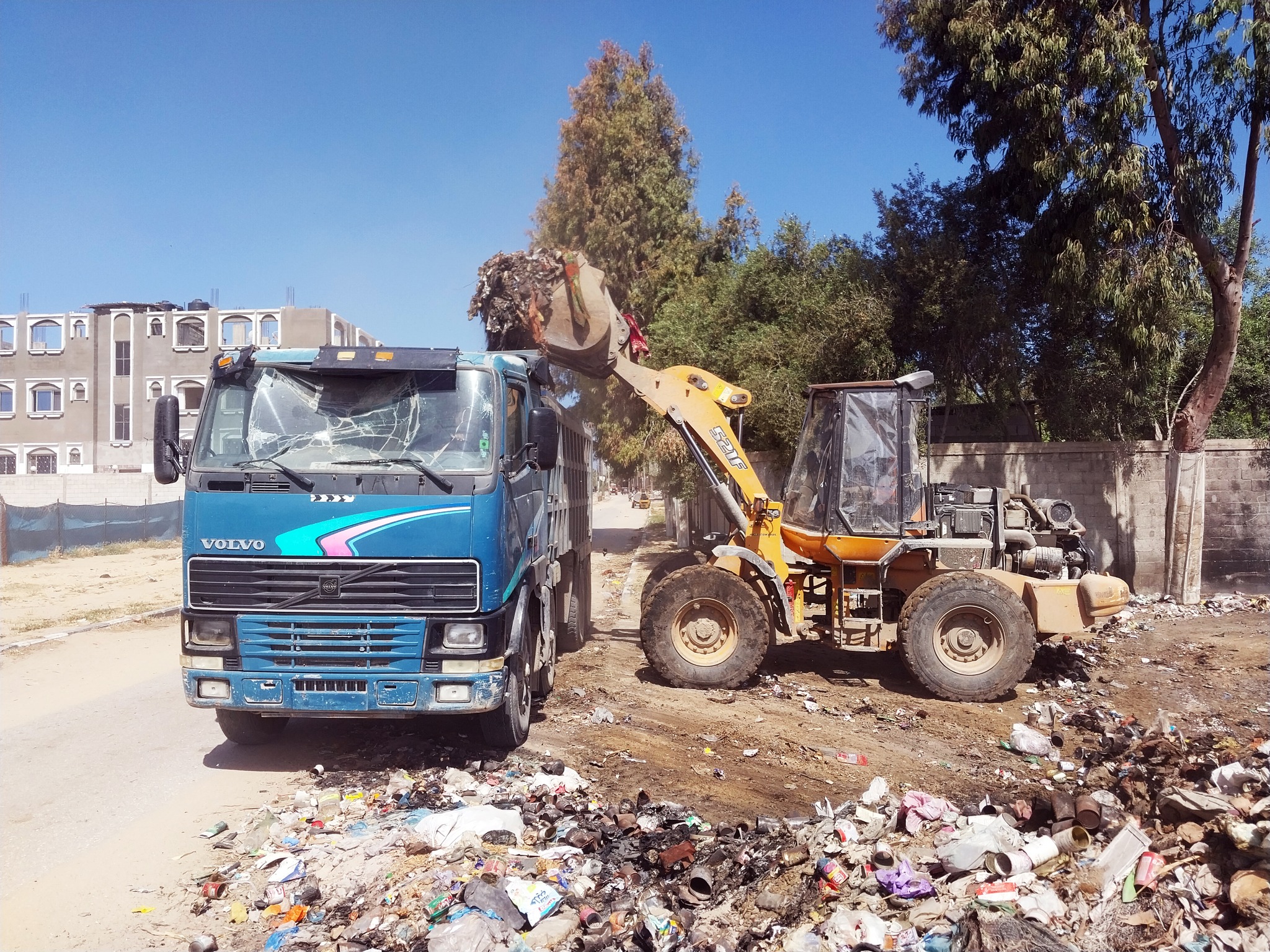جانب من الجهود الميدانية المتواصلة التي تبذلها طواقم بلدية النصيرات في جمع وترحيل النفايات