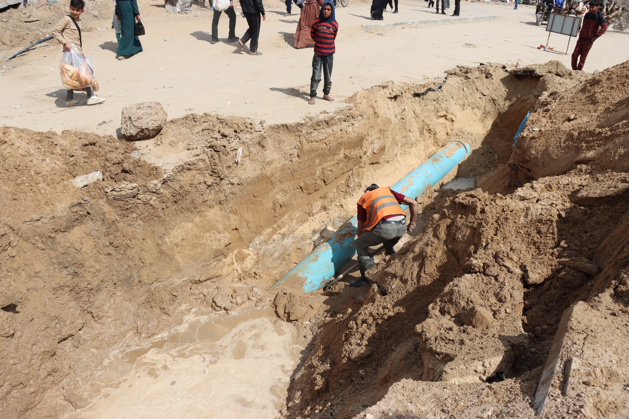بلدية النصيرات توفر المياه للمواطنين شمال النصيرات والمخيم الجديد بعد تعرض خطوط شبكة المياه للقصف الإسرائيلي