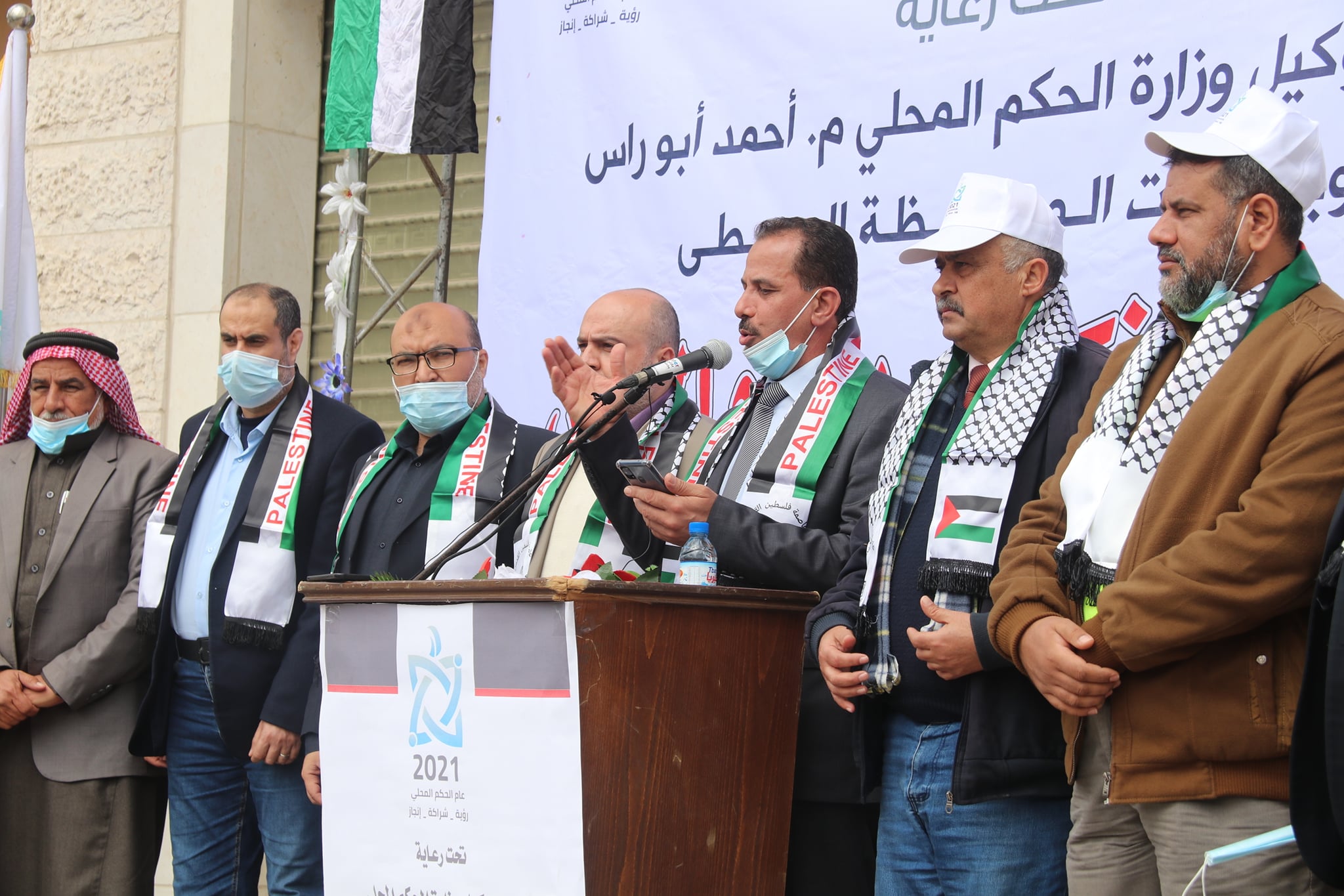 نظمت بلدية النصيرات بالشراكة مع وزارة الحكم المحلي وبلديات المحافظة الوسطى، اليوم الثلاثاء، فعالية لإحياء ذكرى يوم الأرض، بحضور وكيل وزارة الحكم المحلي م. أحمد أبو راس، ورؤساء البلديات، ولفيف من الوجهاء والمخاتير ووسائل الإعلام. وقال رئيس بلدية النصيرات أ. إياد مغاري في كلمته: "في الذكرى الخامسة والأربعون ليوم الأرض متجذرون في أرضنا، وسيبقى شعبنا الفلسطيني ثابتا مدافعا عن حقوقه الراسخة، محافظا على أرض الآباء والأجداد". وأكد على أن الشعب الفلسطيني سيبقى وفيا لكل قطرة دم نزفت فوق ارض فلسطين، رافضا لكافة معاني التهويد والالغاء، مشددا على أن كافة المخططات الخبيثة ستبوء بالفشل أمام صمود وثبات الشعب الفلسطيني. بدوره توجّه نائب رئيس اتحاد بلديات قطاع غزة م. علاء الدين البطة، بالتحية لكافة شرائح المجتمع الفلسطيني، مثنيا على صموده وثباته في وجه المحتل. ووجه البطة الشكر والتقدير لكافة الطواقم العاملة في بلديات قطاع غزة، وخاصة صناع الجمال الذين يبذلون جهودا كبيرة للحفاظ على بيئة نظيفة وآمنة. من ناحيته أكد رئيس شئون العشائر في قطاع غزة أبو سلمان المغني، على تمسك الفلسطينيين بحقهم في العودة وبكل شبر من فلسطين، وأن الأجيال المتعاقبة ستعمل على تحرير الأرض من الاحتلال، وستبقى القدس عاصمة فلسطين الأبدية. من جانبه، وجه وكيل وزارة الحكم المحلي م. أحمد أبو راس، التحية والتقدير لصناع الجمال ولطواقم البلديات كافة على جهدهم وتضحياتهم في الحفاظ على البيئة، مؤكدا على تمسك الشعب الفلسطيني بأرضه والتشبث بها، والتضحية بأغلى ما يملك في سبيل تحرير الأرض والحفاظ على المقدسات. وأوضح أن هذه الفعالية ما هي إلا تأكيد على حق الشعب الفلسطيني في أرضه المسلوبة، وحقه في الدفاع عنها والعودة إليها. واختتمت الفعالية بعرض تراثي لمشاركين من احدى رياض الأطفال بالنصيرات ، الى جانب قيام رؤوساء البلديات ووكيل الوزارة بزراعة عدد من الأشجار.