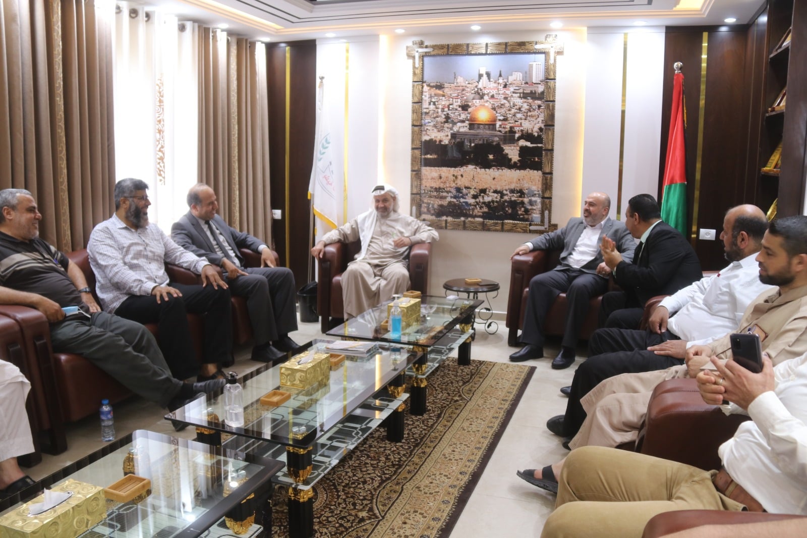 استقبل رئيس بلدية النصيرات أ. إياد مغاري وفداً قياديا من حركة المقاومة الإسلامية حماس ودائرة العلاقات العامة وعلى رأسهم الاستاذ الدكتور ماهر الحولي القيادي في الحركة وعدداً من الشخصيات الاعتبارية، حيث جاءت هذه الزيارة في سياق التواصل مع المجتمع المحلي ومؤسساته لاسيما الخدماتية منها، ولتقديم الشكر والامتنان الكبير لما قدمته البلدية خلال العدوان الصهيوني على القطاع. بدوره، رحب رئيس البلدية بالوفد الزائر وشكرهم على اهتمامهم بمتابعة سير العمل الخدماتي في البلديات والتنسيق المتواصل معها، وأشاد بالانتصار الكبير الذي حققته المقاومة في غزة في معركة سيف القدس، وذلك ما كان ليكون لولا صمود شعبنا والوحدة التي تجلت بين أبناء الشعب الفلسطيني الرافض للاحتلال وممارساته ومجازره. من جانبه شكر الوفد رئيس البلدية على جهوده الواضحة على أرض الميدان من خلال متابعته لمراكز الإيواء وتقديم الخدمات للسكان في ظل العدوان الصهيوني ولطاقم البلدية الذي كان يعمل دون كلل أو ملل، وشدد على أن هذا الانتصار سطر بدماء الشهداء والجرحى خصوصا أنه حمل عنوان القدس. وفي نهاية الزيارة قدم وفد حركة حماس درع شكر وتقدير لرئيس البلدية لجهوده المبذولة في خدمة المجتمع المحلي.