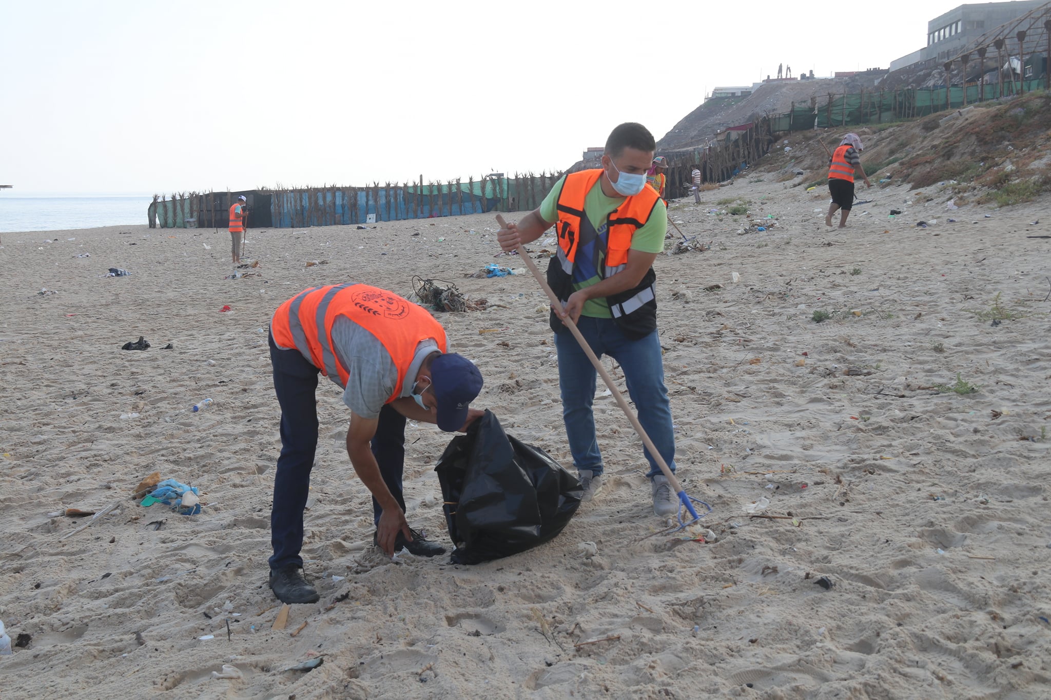 العنوان : بلدية النصيرات تنفذ مبادرة لتنظيف شاطئ البحر