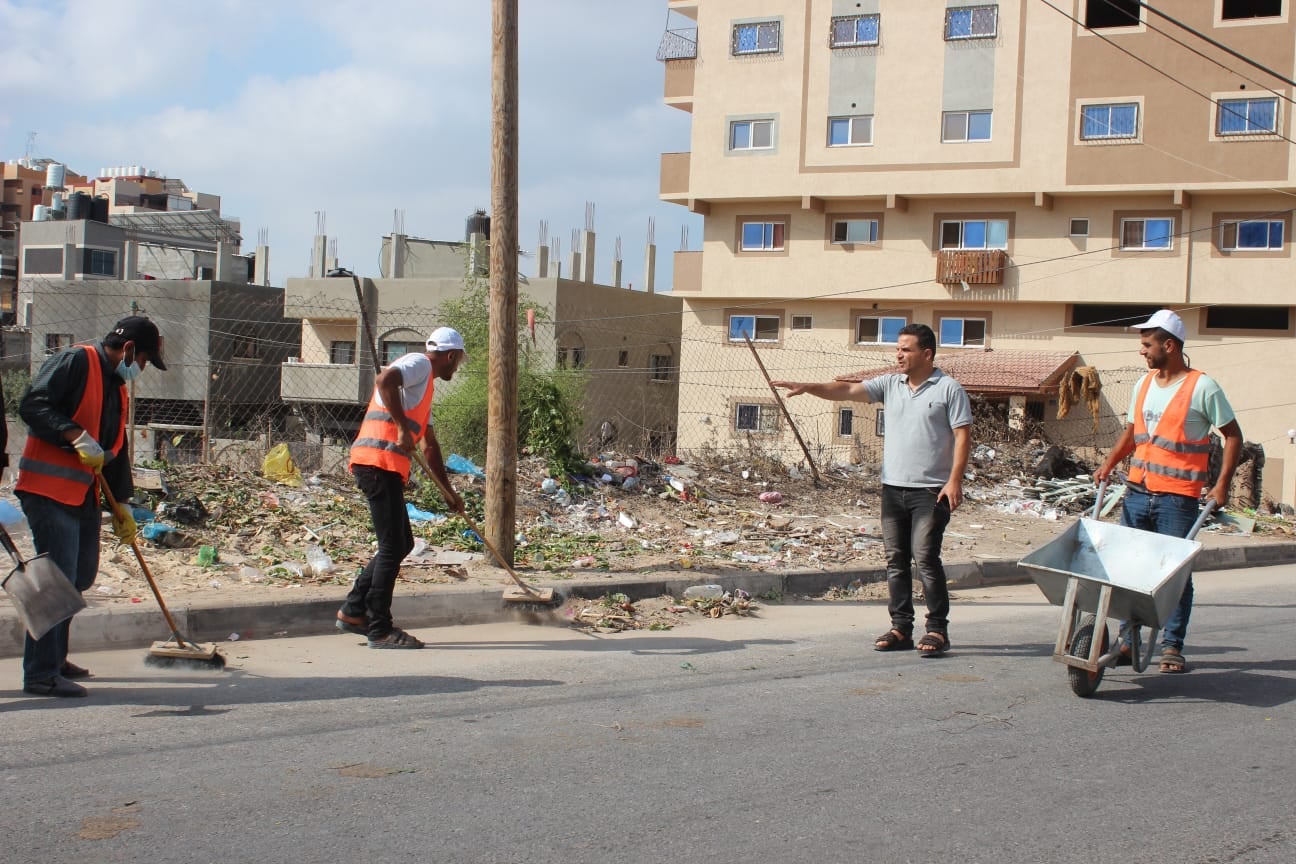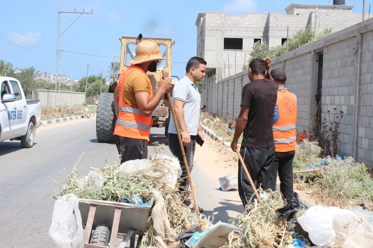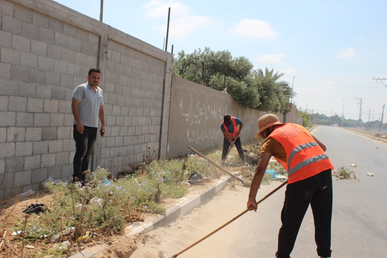 العنوان : تستمر جهود بلدية النصيرات في تنظيف الشوارع الرئيسية وإزالة الأشواك والرمال