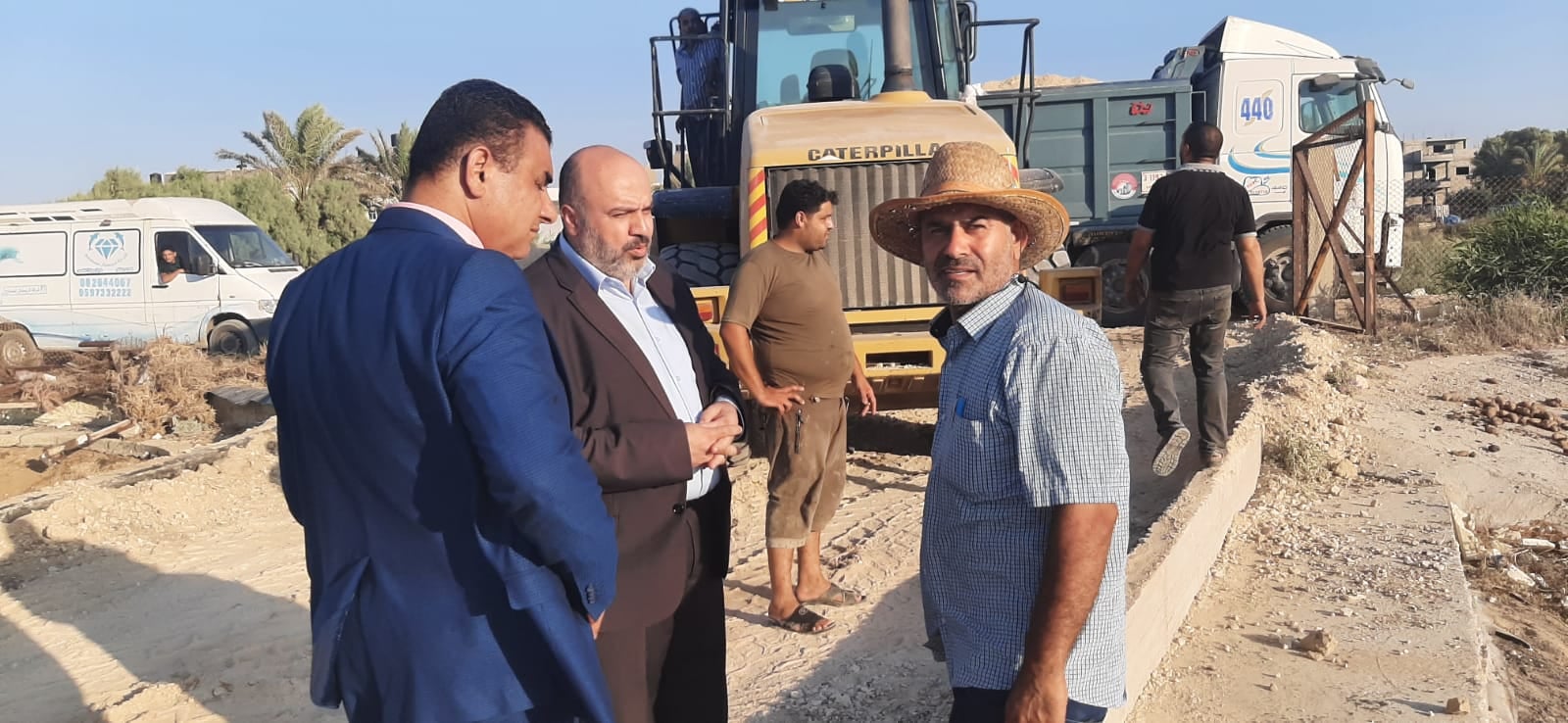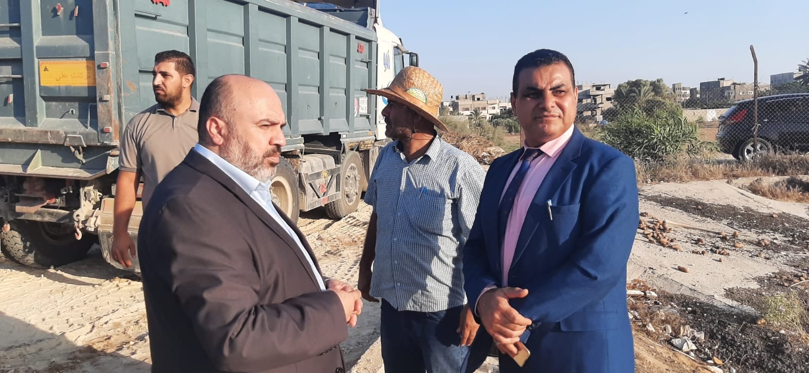 رئيس بلدية النصيرات أ. إياد مغاري وبرفقته د. غسان وشاح، يتفقد سير الأعمال التي تنفذها مصلحة مياه بلديات الساحل لمعالجة احواض الصرف الصحي غرب النصيرات، والعمل على انهائها لحل المشكلة التي يعاني منها سكان المنطقة.
