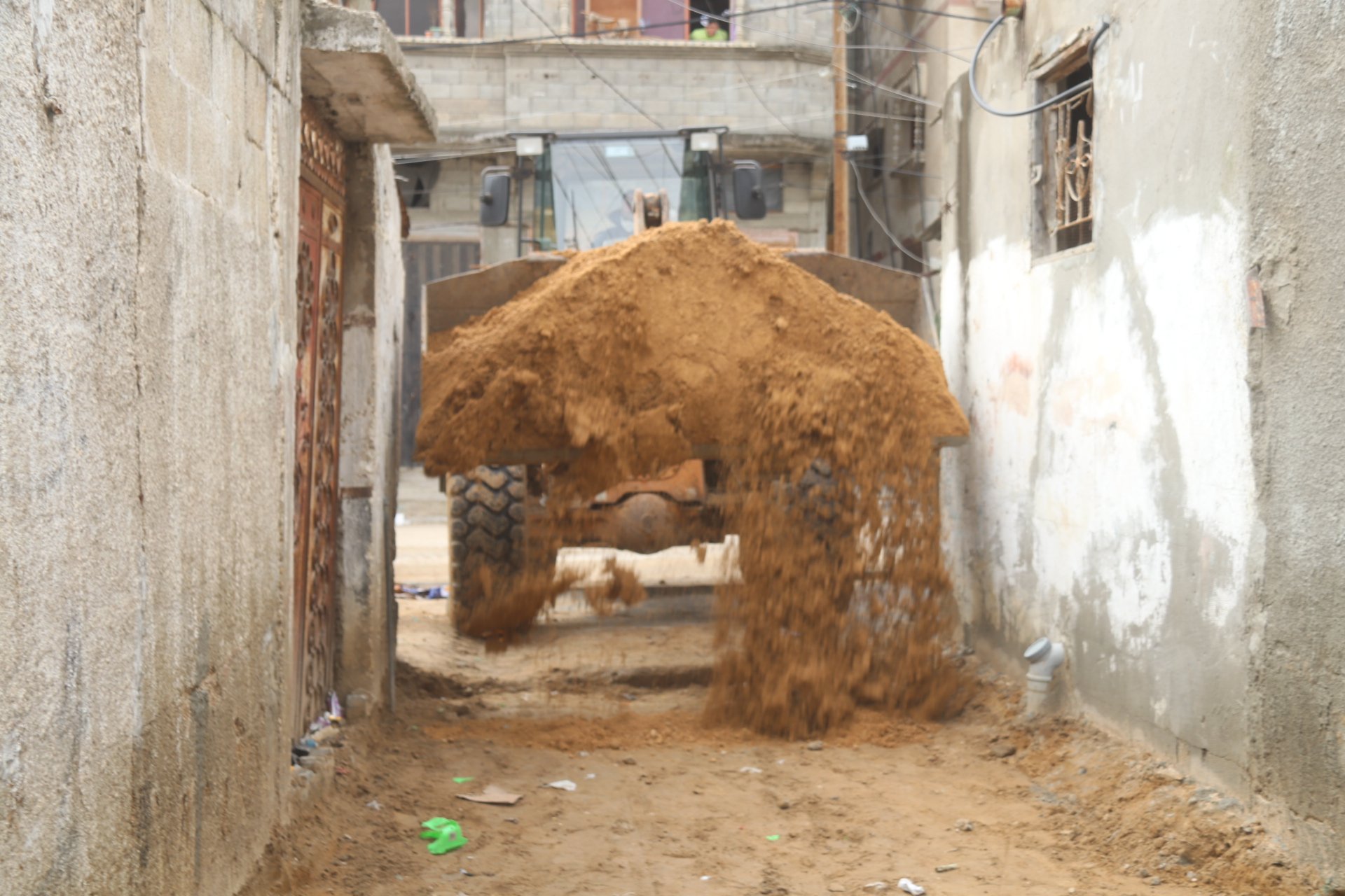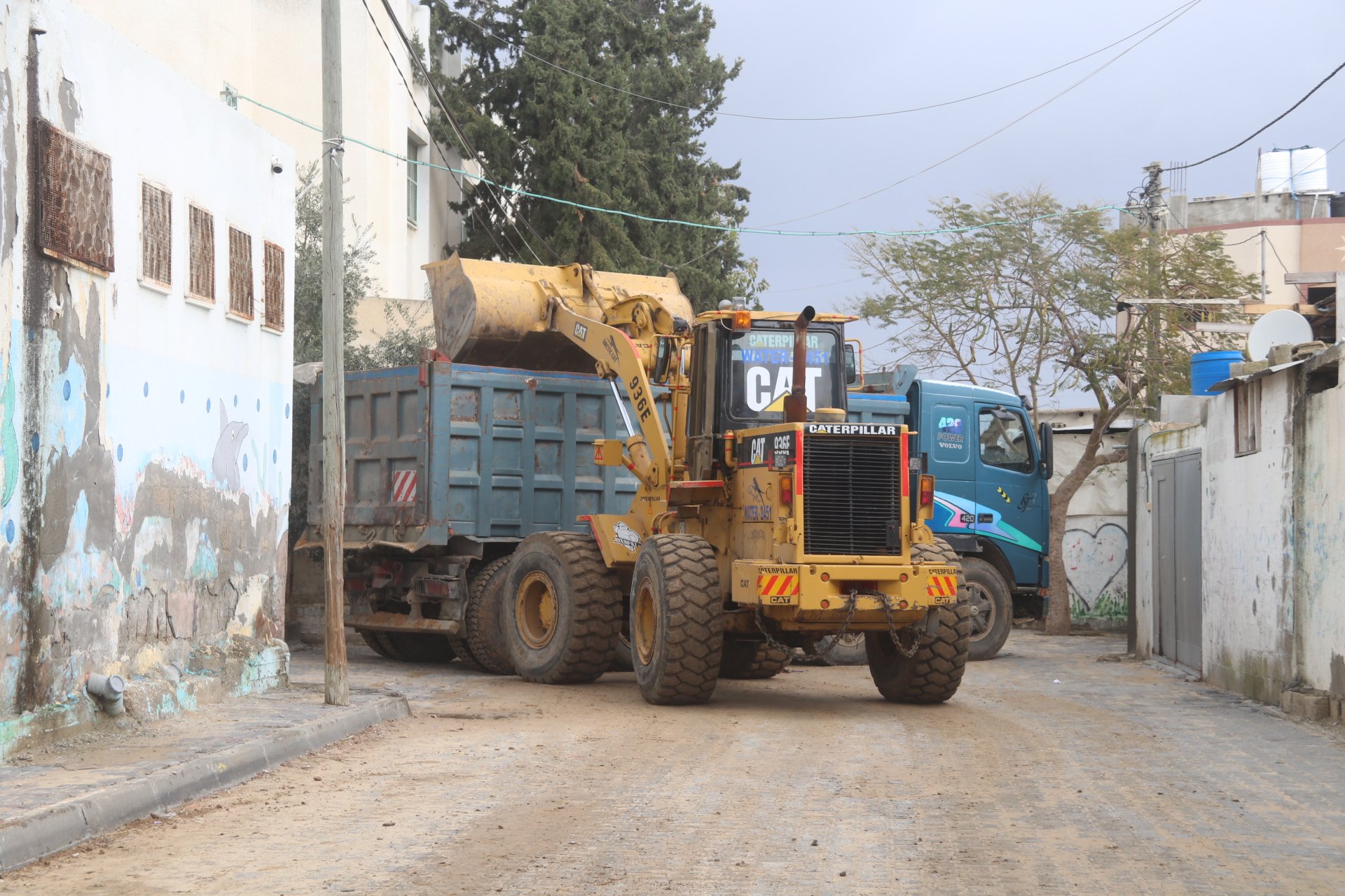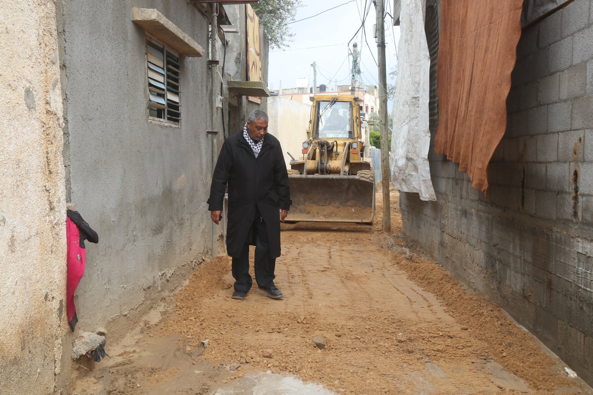 ضمن المبادرة المجتمعية لتبليط 750 متر بمنطقة "فرج الله" بلدية النصيرات تواصل العمل في التجهيز لتبليط منطقة فرج الله