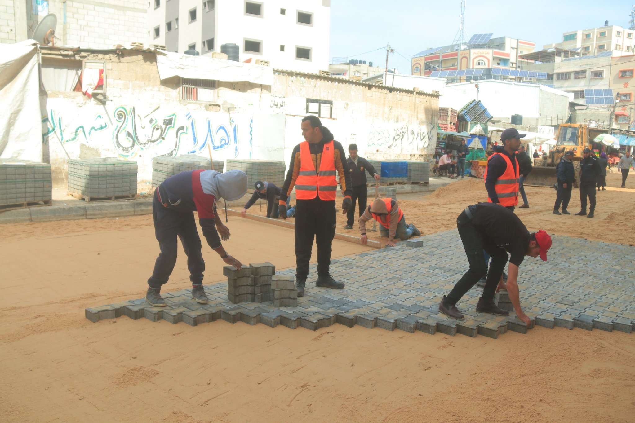 العنوان : بلدية النصيرات تبدأ بتبليط مربع مسجد التقوى