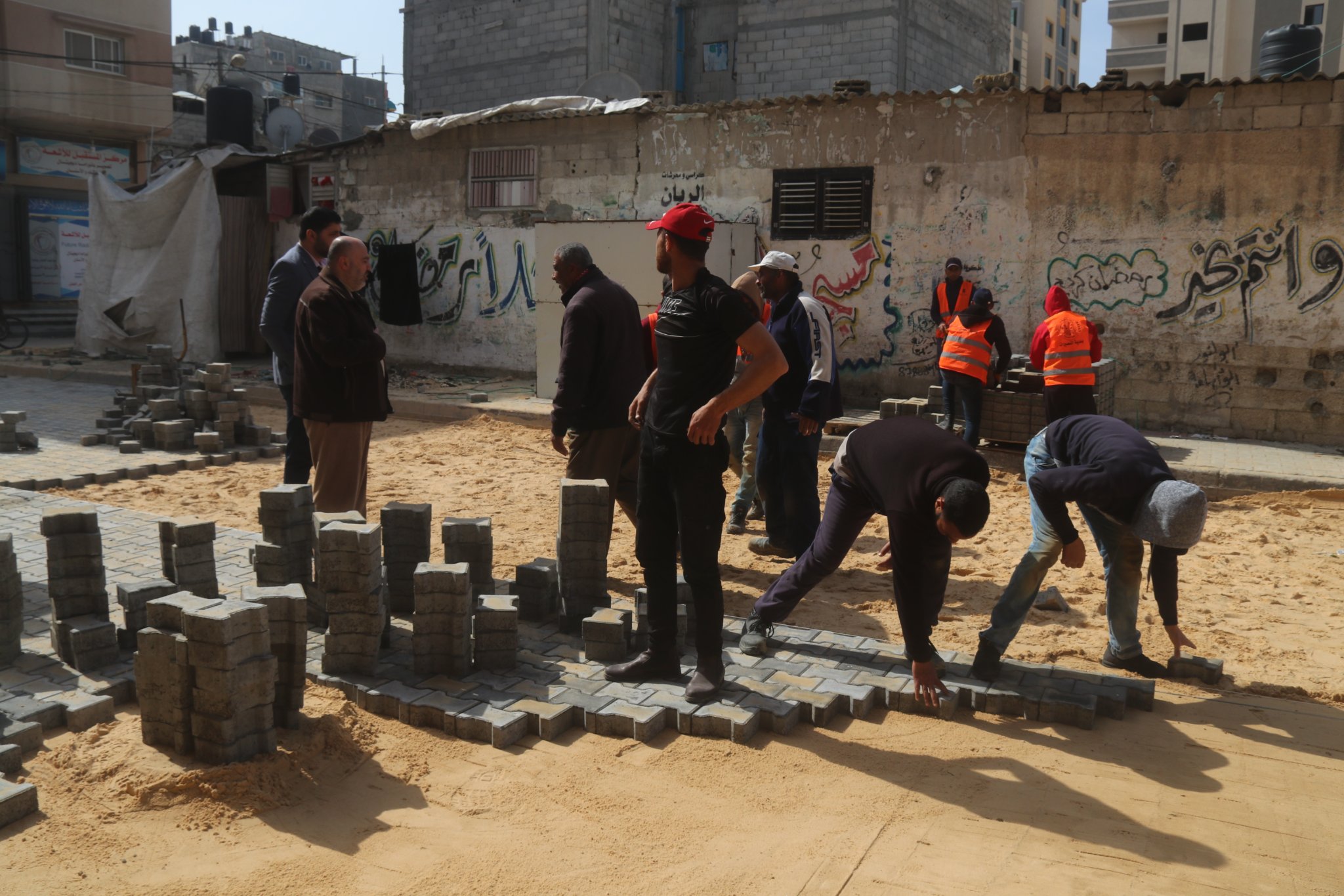 تفقد رئيس بلدية النصيرات أ إياد مغاري سير العمل في تبليط وتطوير مربع مسجد التقوى واكد على حرص البلدية على تقديم افضل الخدمات للمواطنين وتسخير الجهود كافة من اجل انجاز مشاريع حيوية وضرورية . حيث شرعت بلدية النصيرات بأعمال تبليط وتطوير مربع مسجد التقوى و تعتبر من المناطق الحيوية لما تشكله من أهمية كبيرة، خاصة وأنها تقع وسط سوق النصيرات. كما تتضمن الاعمال تعزيز مصافي مياه الأمطار وتحسين العمل فيها، والجدير ذكره انه سيتم تبليط حوالي 800 متر مربع ويأتي ذلك ضمن جهود البلدية في تطوير البنية التحتية والخدمات المقدمة للمواطنين .