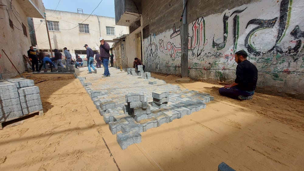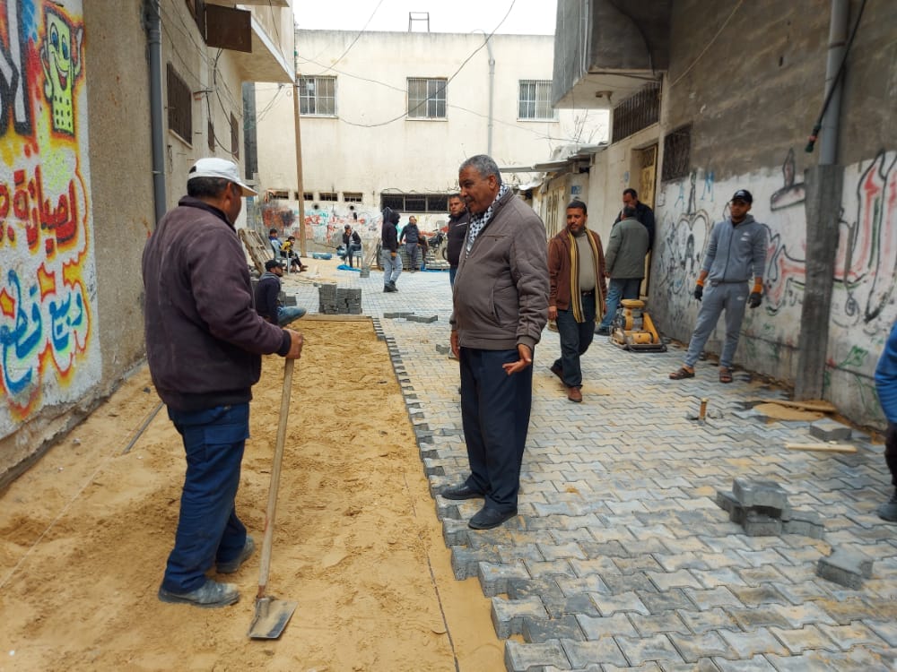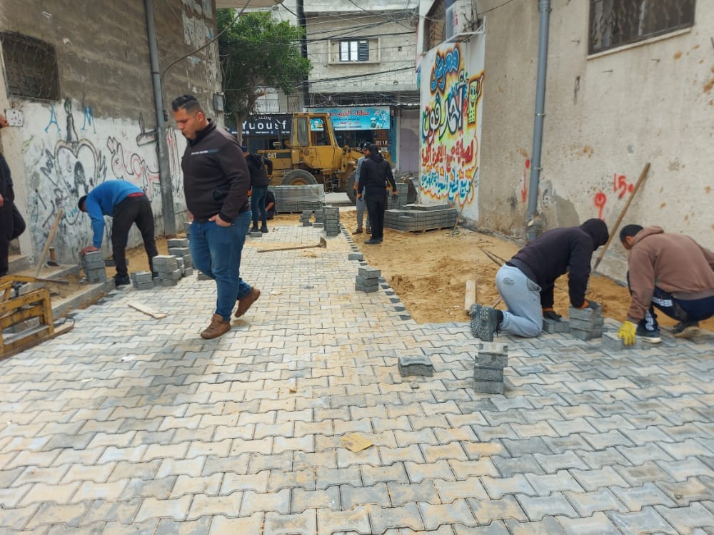 استكملت بلدية النصيرات ، العمل على تطوير وتبليط الشوارع الترابية في مربع "القرعة وعيد" بمنطقة مخيم 1.