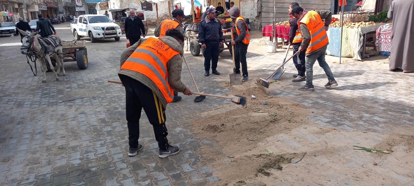 ضمن أعمال المتابعة اليومية لدائرة الصحة والبيئة.. يواصل صناع الجمال في بلدية النصيرات أعمالهم في جمع وترحيل النفايات وكنس الرمال من الشوارع العامة، بالإضافة إلى متابعة ري الأشجار على امتداد شارع صلاح الدين والشوارع العامة الأخرى.