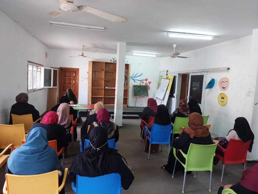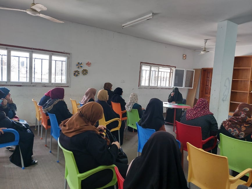 جانب من الندوة الدينية التي نفذتها مكتبة الشهيد خالد الحسن التابعة لبلدية النصيرات بالتعاون مع وزارة الأوقاف والشئون الدينية، اليوم الأحد، والتي تحدثت فيها الداعية رائدة العمصي عن الصوم وعن الحوائج، حيث تأتي أهمية هذه المحاضرات لزيادة وتحسين الوعي الديني عند أفراد المجتمع.