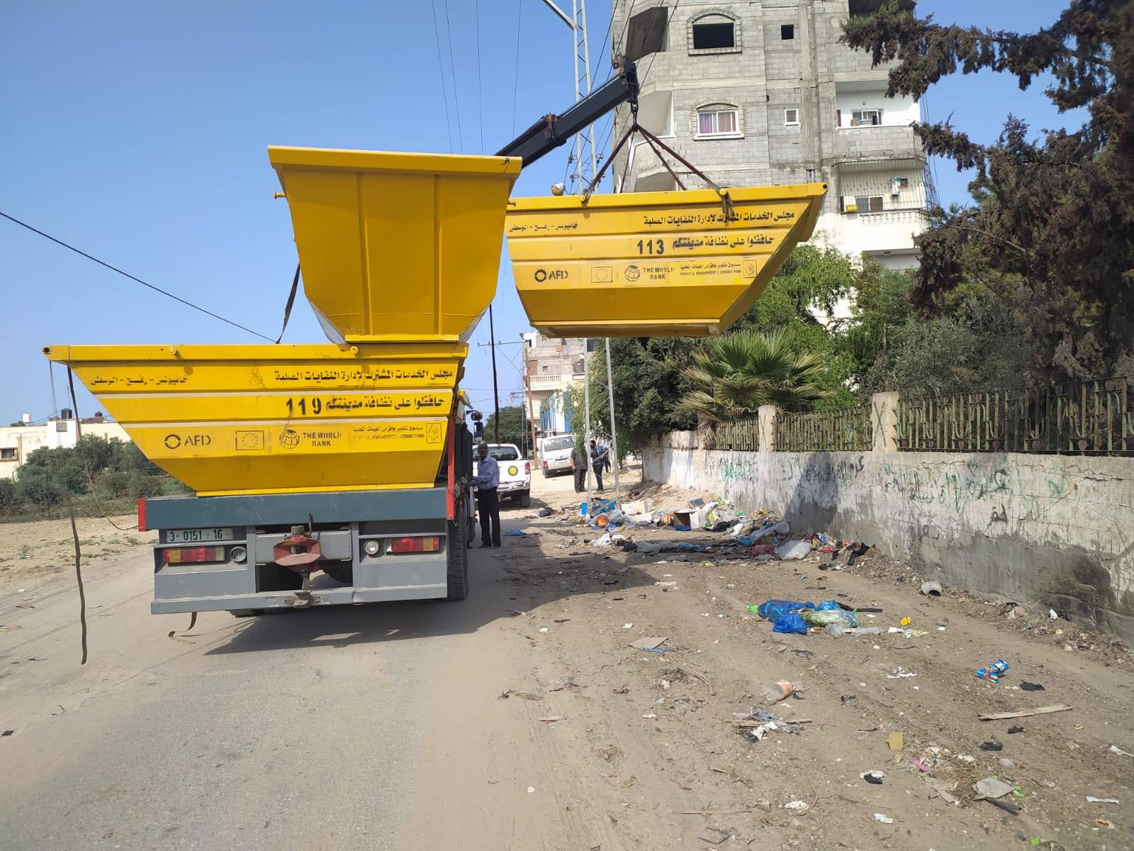 العنوان : توزيع حاويات جديدة في مناطق متفرقة بالنصيرات