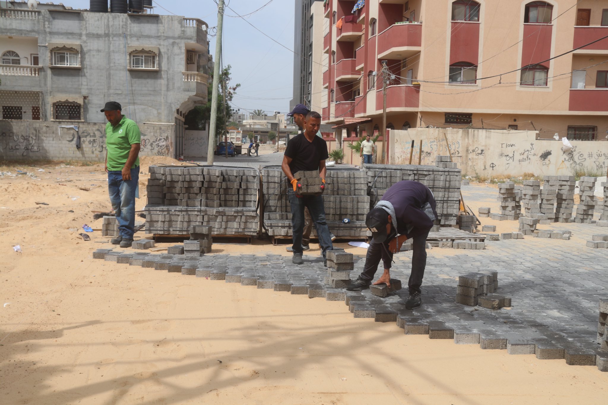إسم الألبوم : : بلدية النصيرات تواصل العمل في تبليط شارع مركز العودة الصحي .