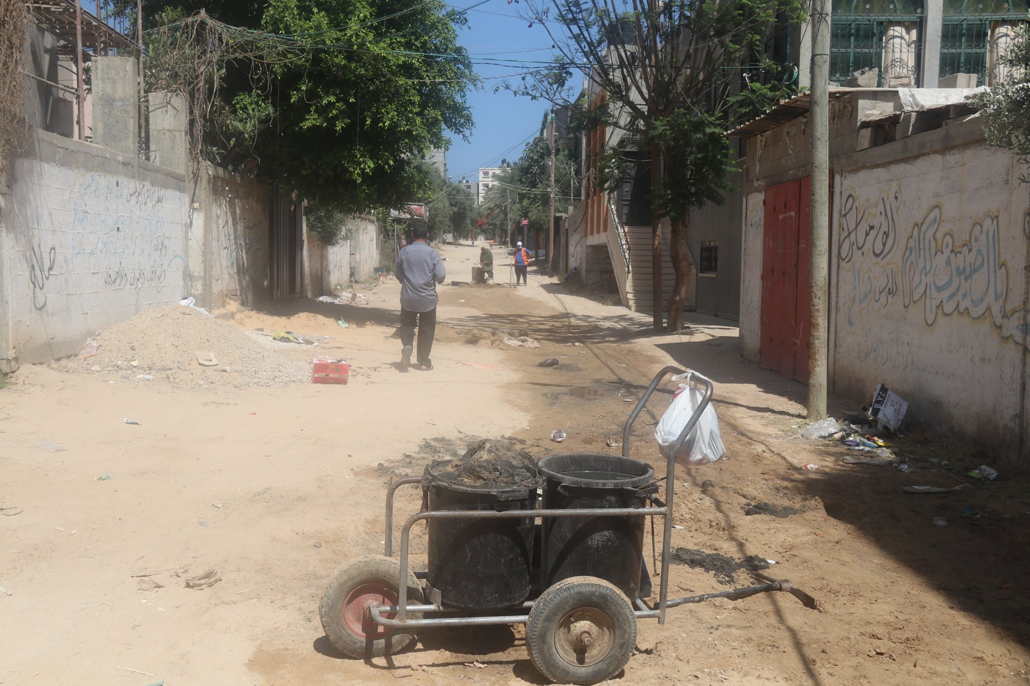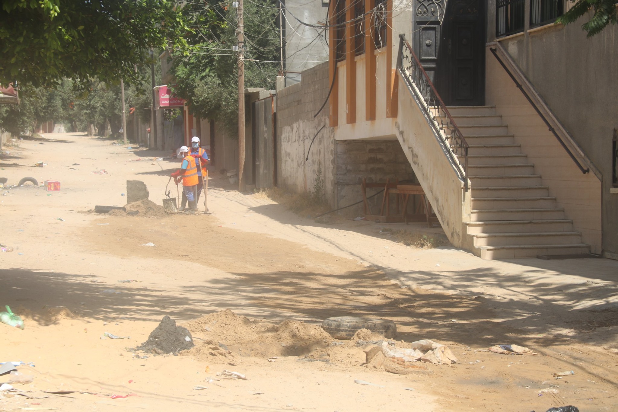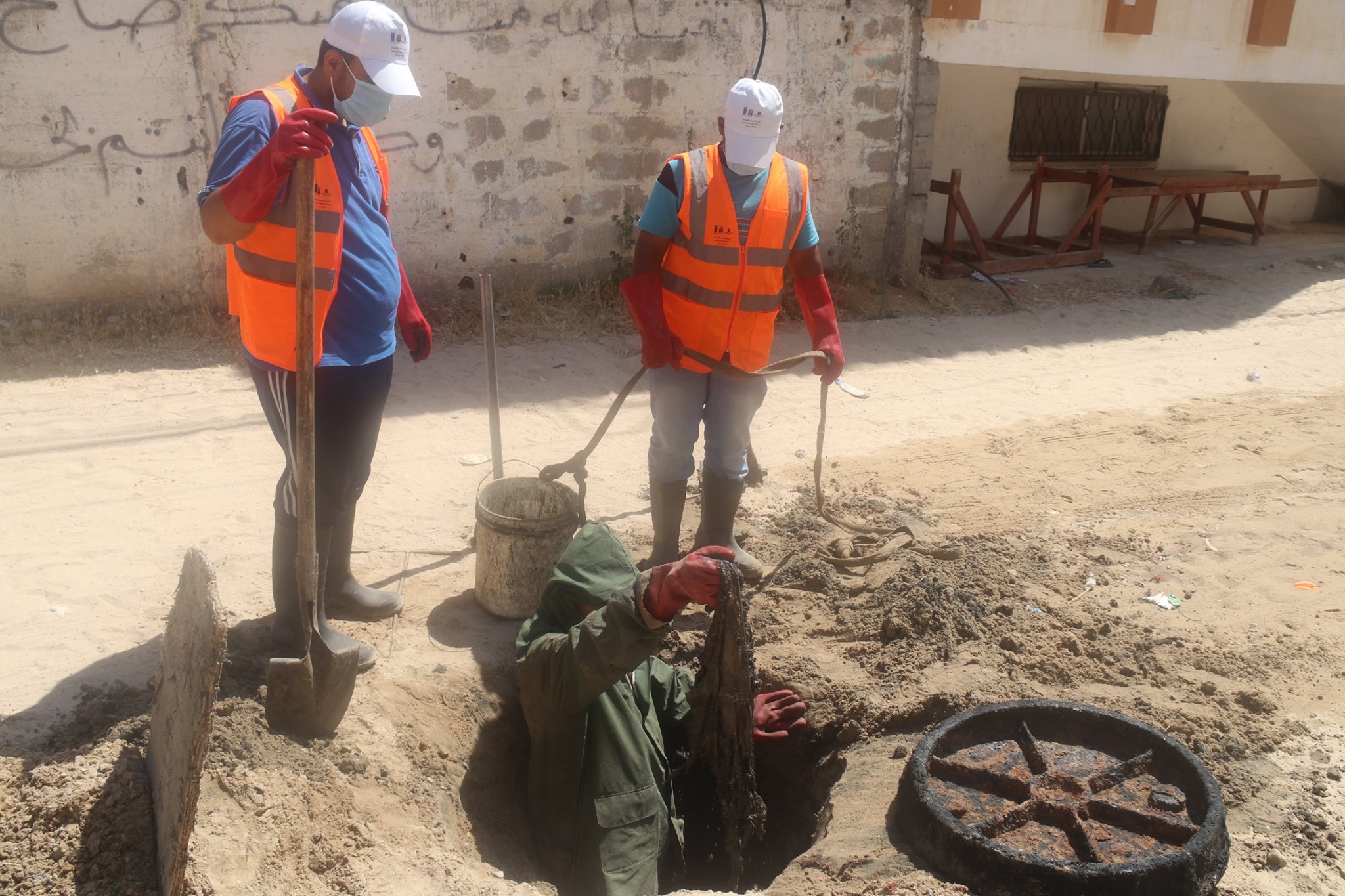 إسم الألبوم : : طاقم قسم الصرف الصحي خلال قيامه بأعمال تنظيف خطوط الصرف الصحي بجوار صلى خالد الخطيب بمنطقة المفتي.