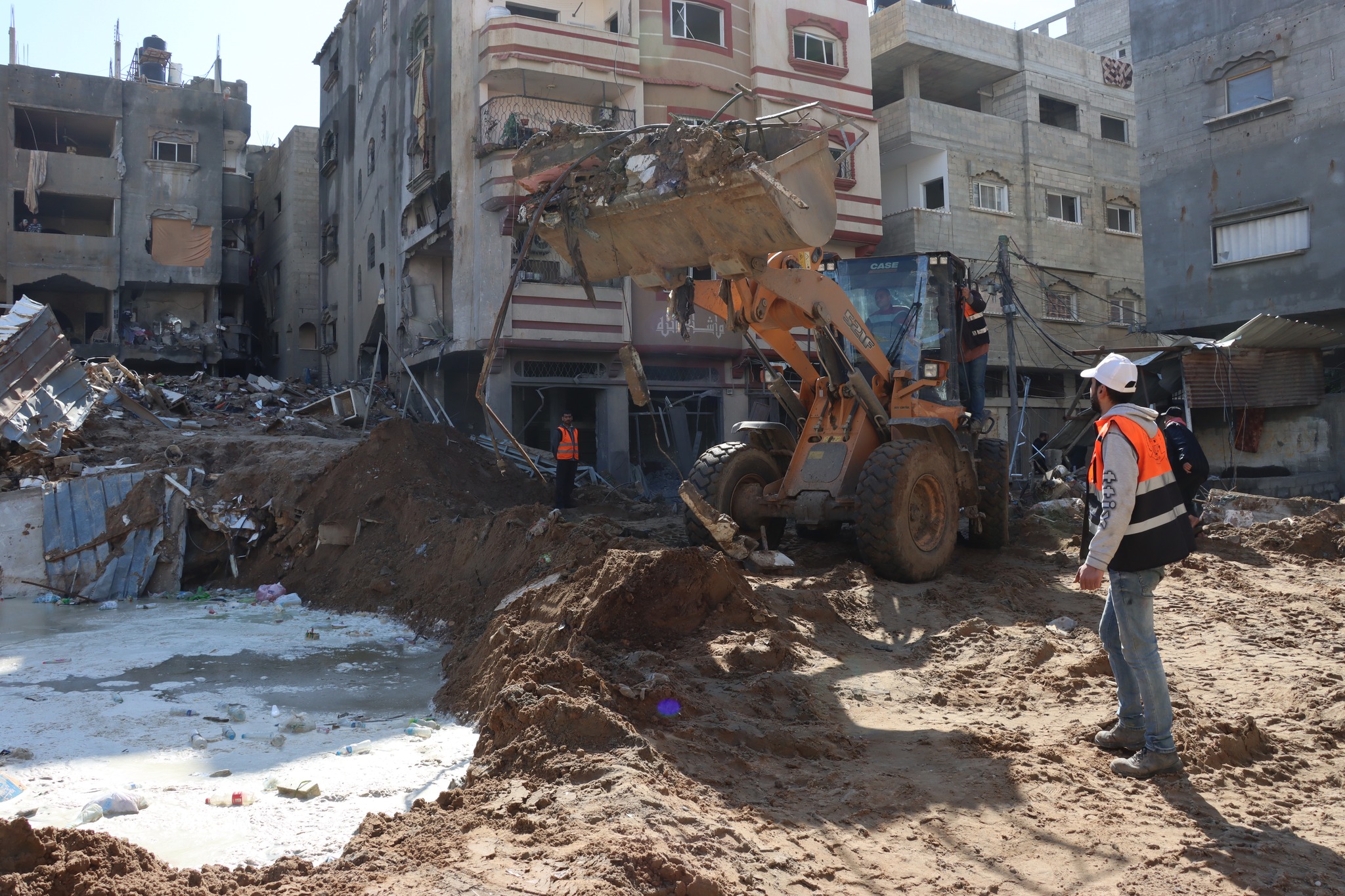 إسم الألبوم : : جانب من جهود لجنة طوارئ بلدية النصيرات للعمل على تفريغ المياه المتجمعة في الشوارع التي تعرضت لقصف الاحتلال