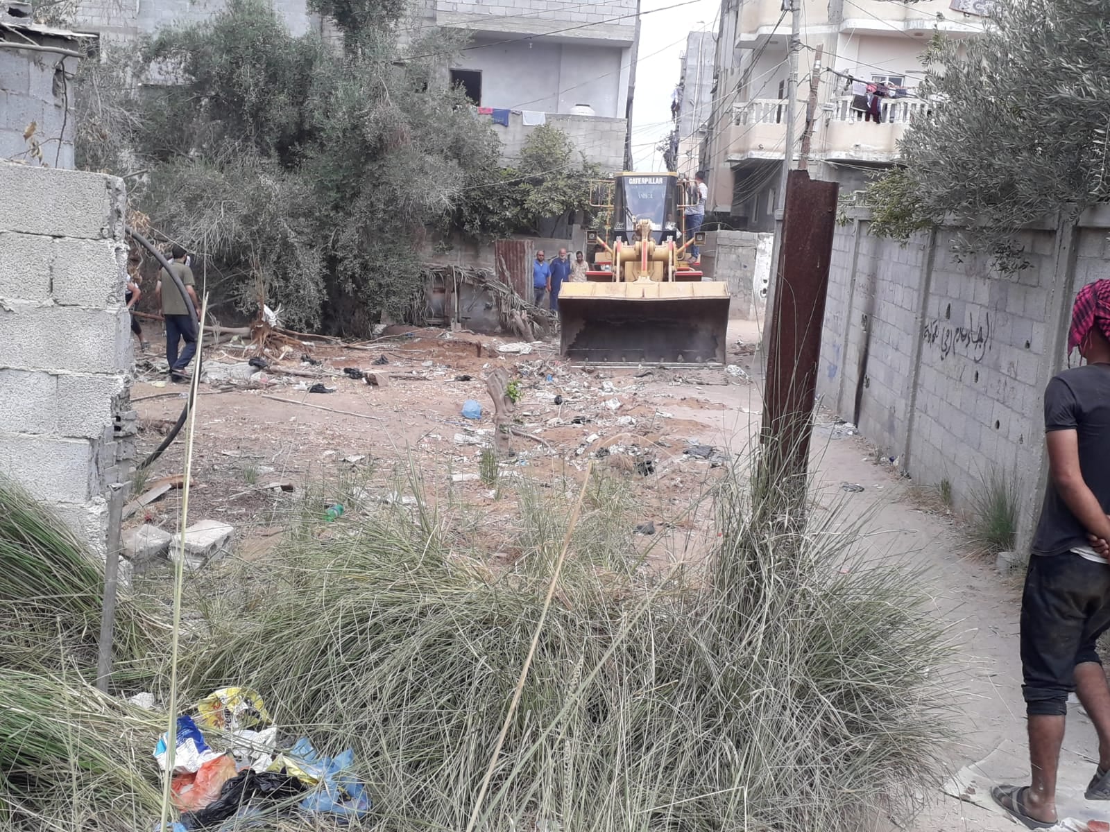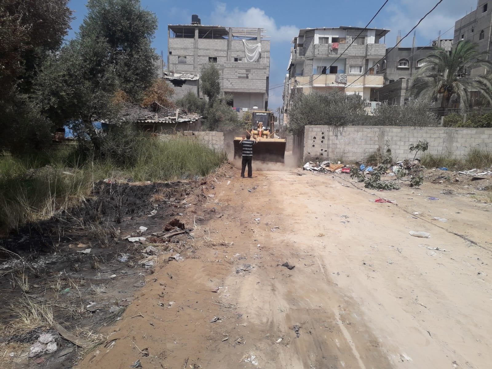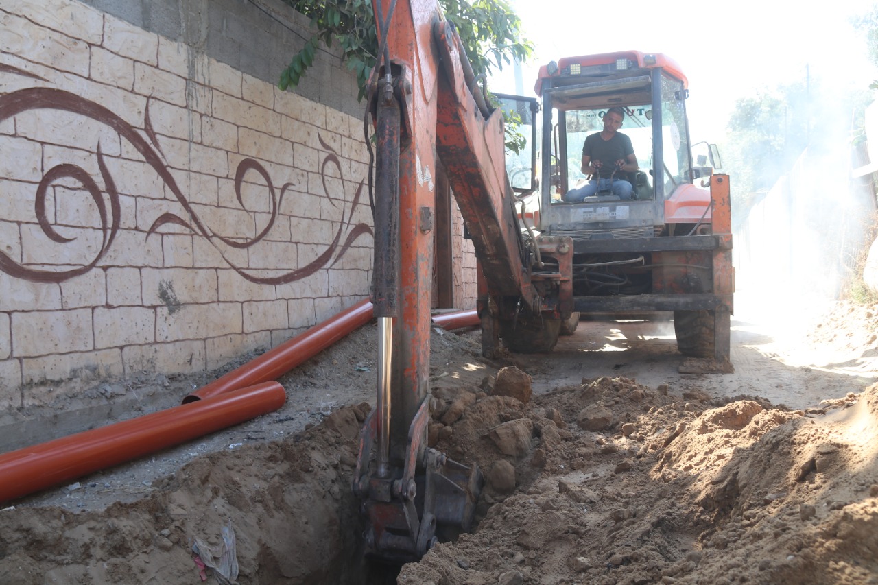بلدية النصيرات تقوم بتوسعة شارع ترابي بعرض 4 أمتار