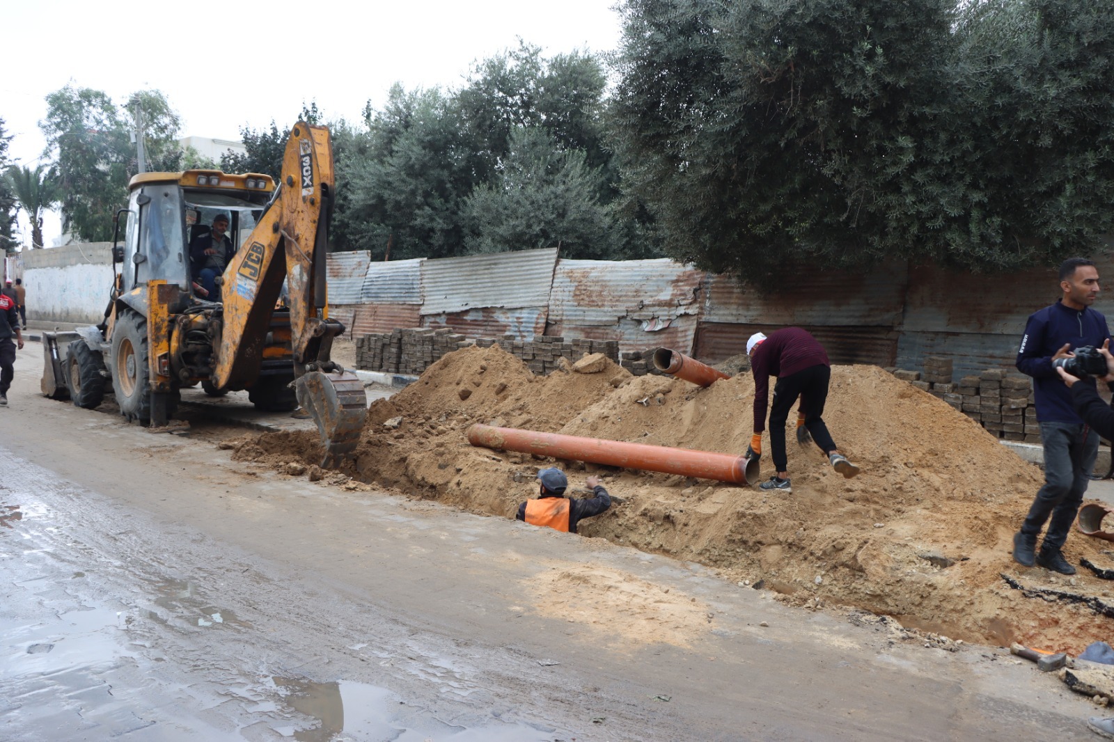 بلدية النصيرات تنجز تمديد خط صرف صحي بمنطقة أرض صرصور