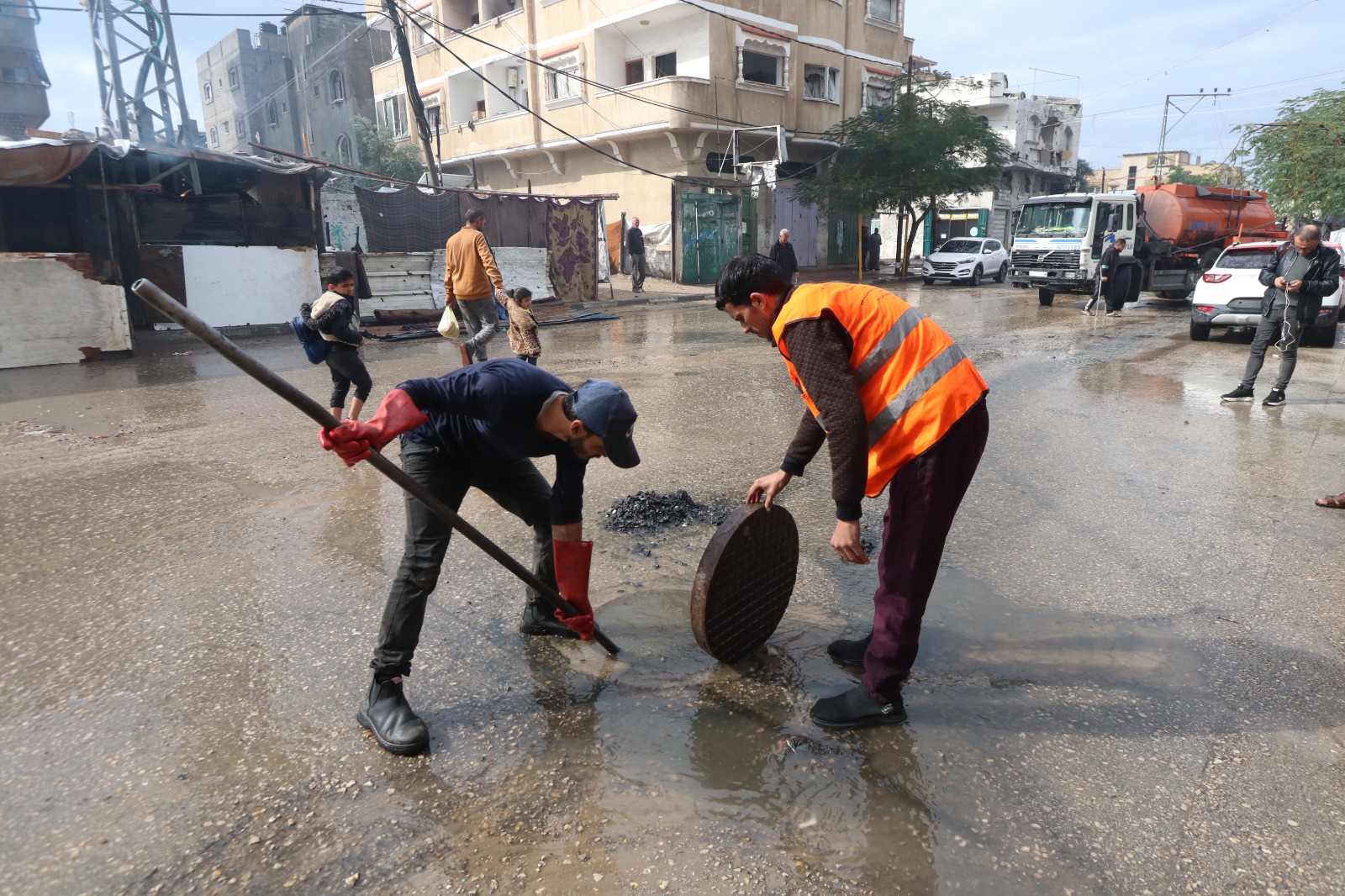 صور توثّق جهود طواقم بلدية النصيرات في مواجهة آثار المنخفض الجوي