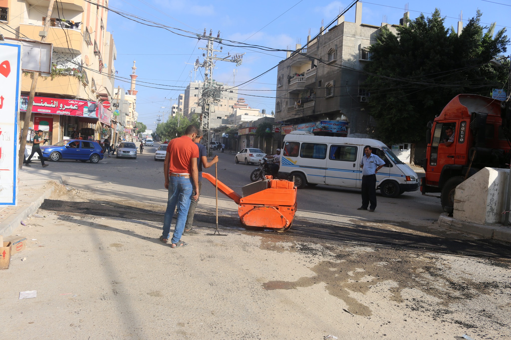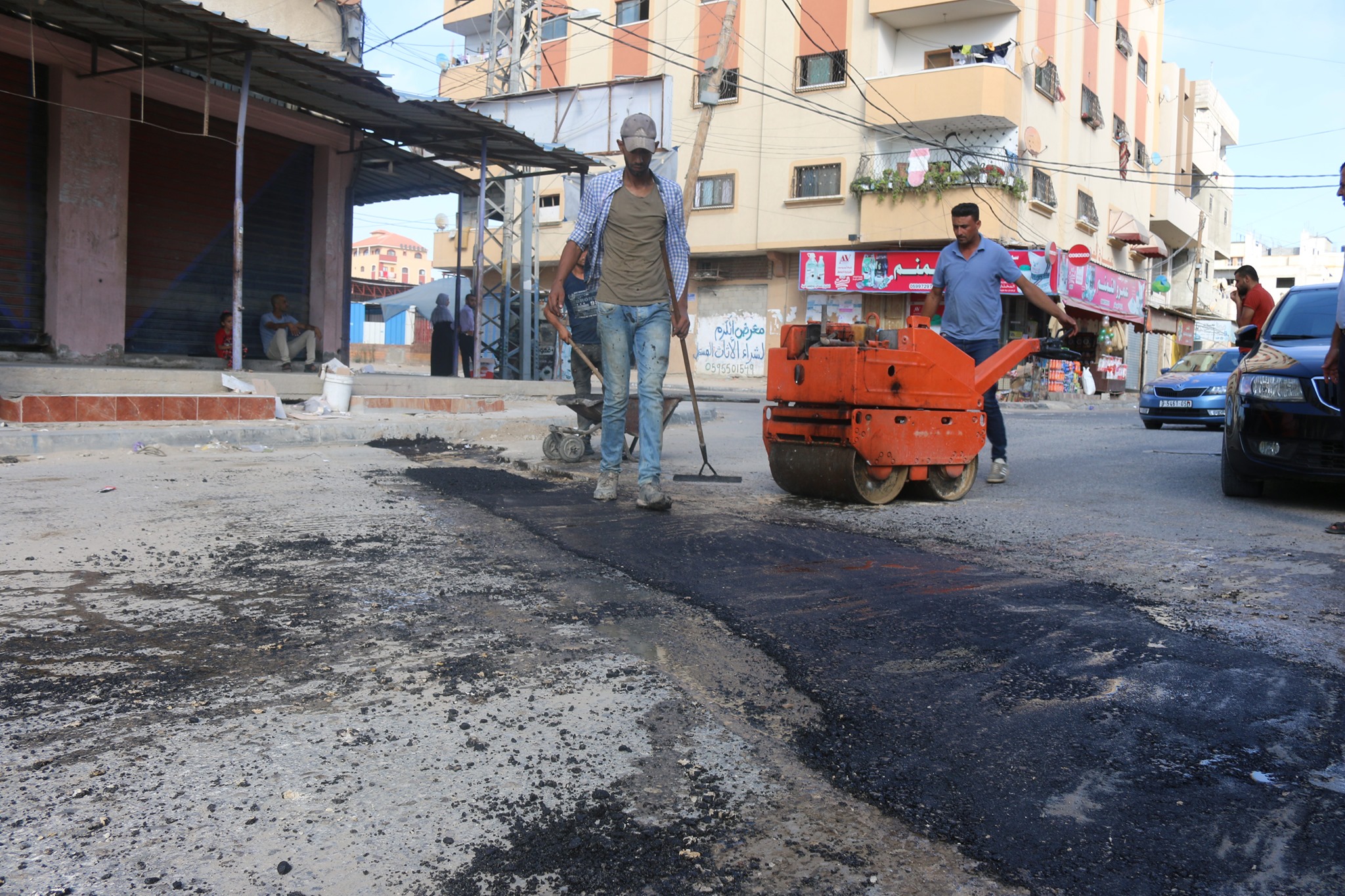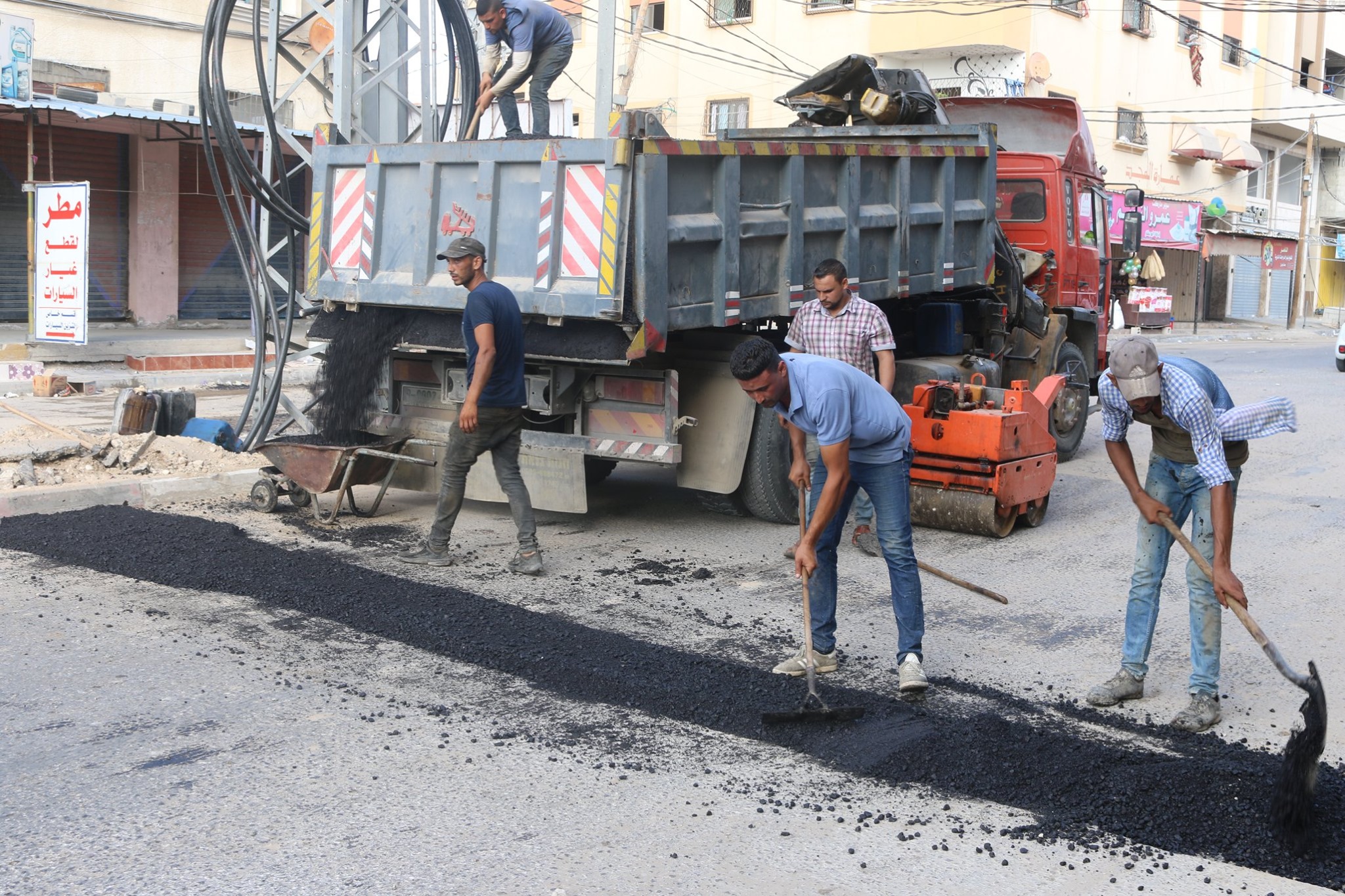 تنفيذ أعمال صيانة للإسفلت ضمن مشروع تمديد كوابل كهربائية بالنصيرات
