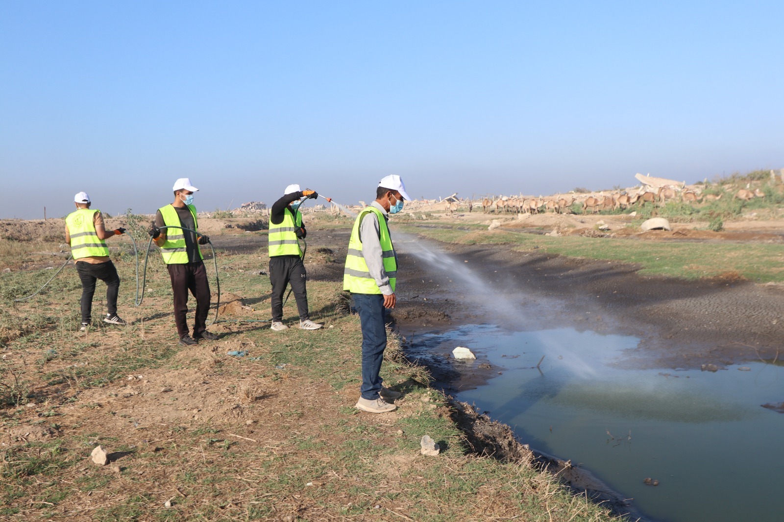 رغم شُحّ الإمكانيات… بلدية النصيرات تُواصل مكافحة البعوض في مجرى وادي غزة