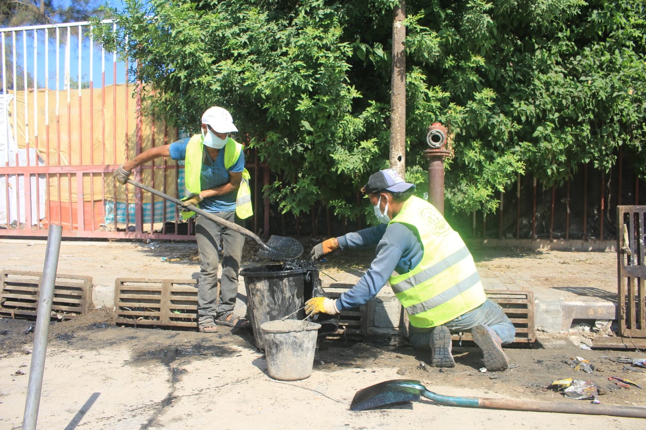 جانب من الجهود الميدانية المتواصلة التي تبذلها طواقم بلدية النصيرات في صيانة خطوط الصرف الصحي