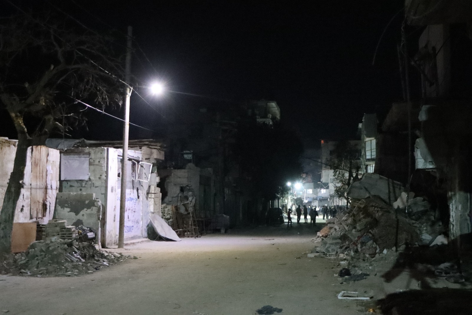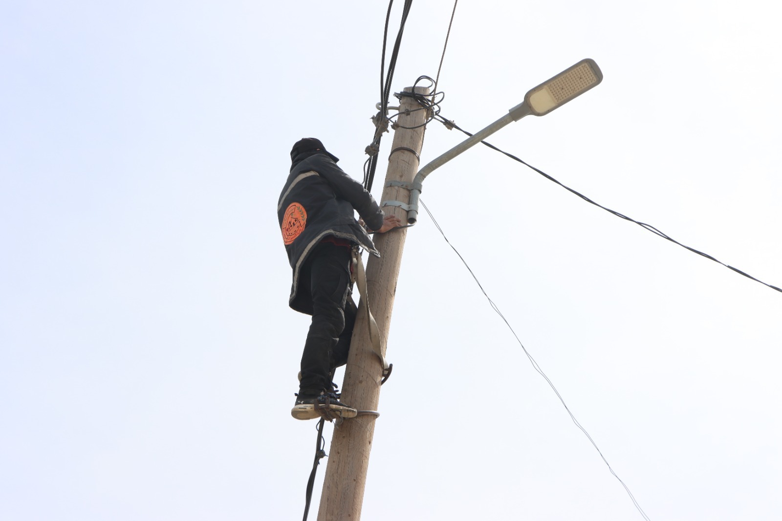 وشملت الأعمال تمديد كوابل وتركيب عدد من كشّافات الإنارة في الشارع وصولا إلى الشارع المتفرع من منطقة مخيم 1.