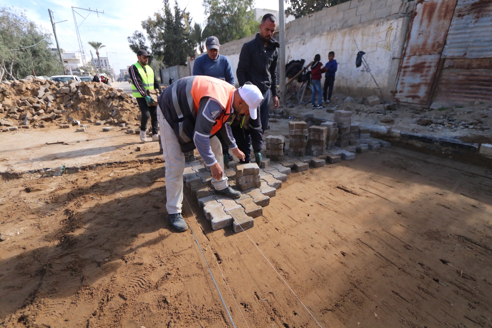 العنوان : في إطار الجهود الميدانية المتواصلة.. نفّذت بلدية النصيرات أعمال صيانة وتبليط في منطقة متضررة