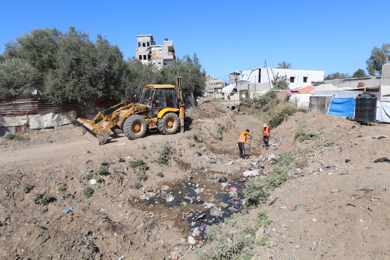 العنوان : بالتعاون مع مؤسسة العمل ضد الجوع (ACF) بلدية النصيرات تقوم بتنظيف وتسوية مجرى وادي قشاش